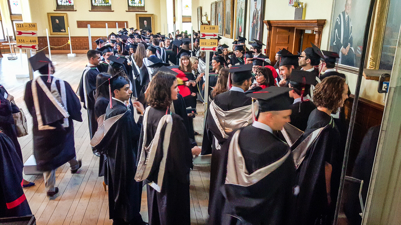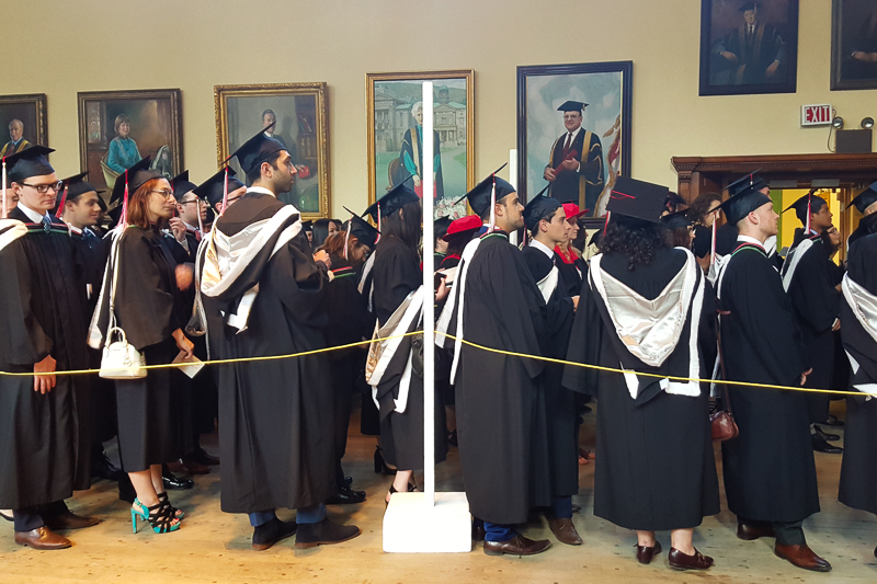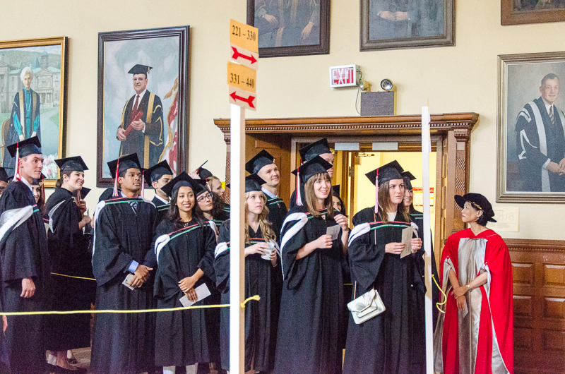 - Lining up in Redpath Hall, making sure everyone is in the right order